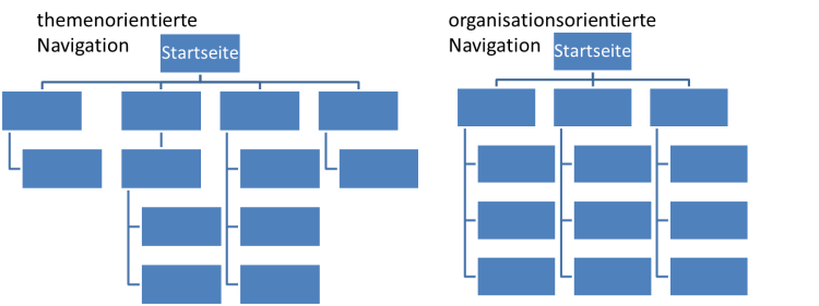 Abbildung: themenorientierte und organisationsorientierte Navigation